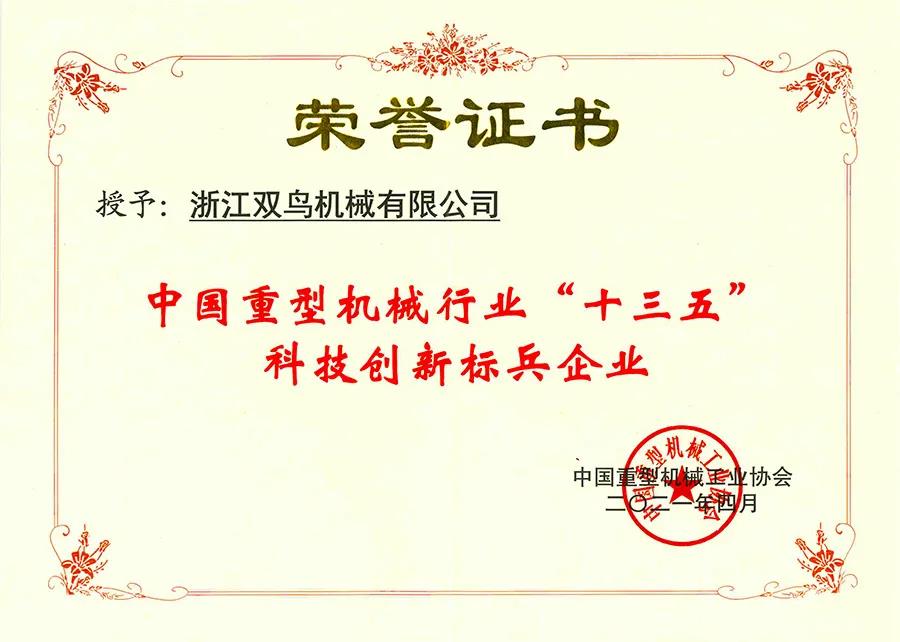本文標題:以創(chuàng)新應變 為制造賦能 | 雙鳥機械榮獲“中國重型機械行業(yè)'十三五'科技創(chuàng)新標兵企業(yè)”