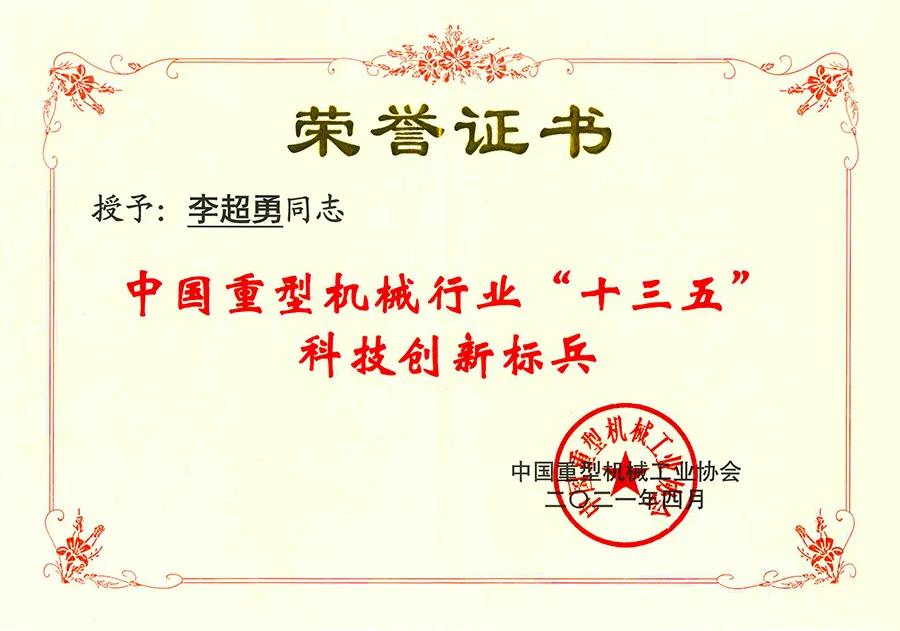 4月16日,中國重型機械工業(yè)協(xié)會八屆二次會員代表大會暨理事會在北京召開,會議對中國重型機械工業(yè)協(xié)會“十三五”期間在科技創(chuàng)新方面取得的成績進行總結表彰,雙鳥機械榮膺“中國重型機械行業(yè)'十三五'科技創(chuàng)新標兵企業(yè)”。作為中國重型機械工業(yè)協(xié)會副理事長單位,雙鳥機械總經(jīng)理盛嘉慶應邀出席會議并領獎。雙鳥機械技術部經(jīng)理助理李超勇榮獲“中國重型機械行業(yè)'十三五'科技創(chuàng)新標兵”。