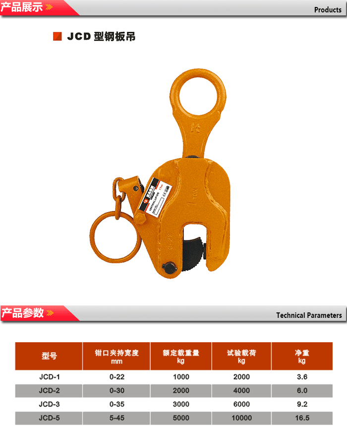 JCD安裝使用方便,外形簡潔美觀;再夾緊或松開時,吊環做直線移動。